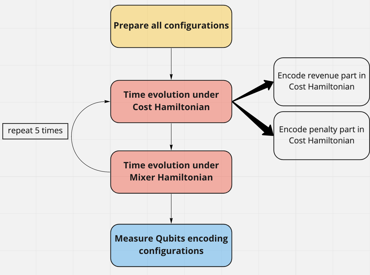 In this step, we encode the revenue information into the energy of eigenstates of $H_{C}$.
