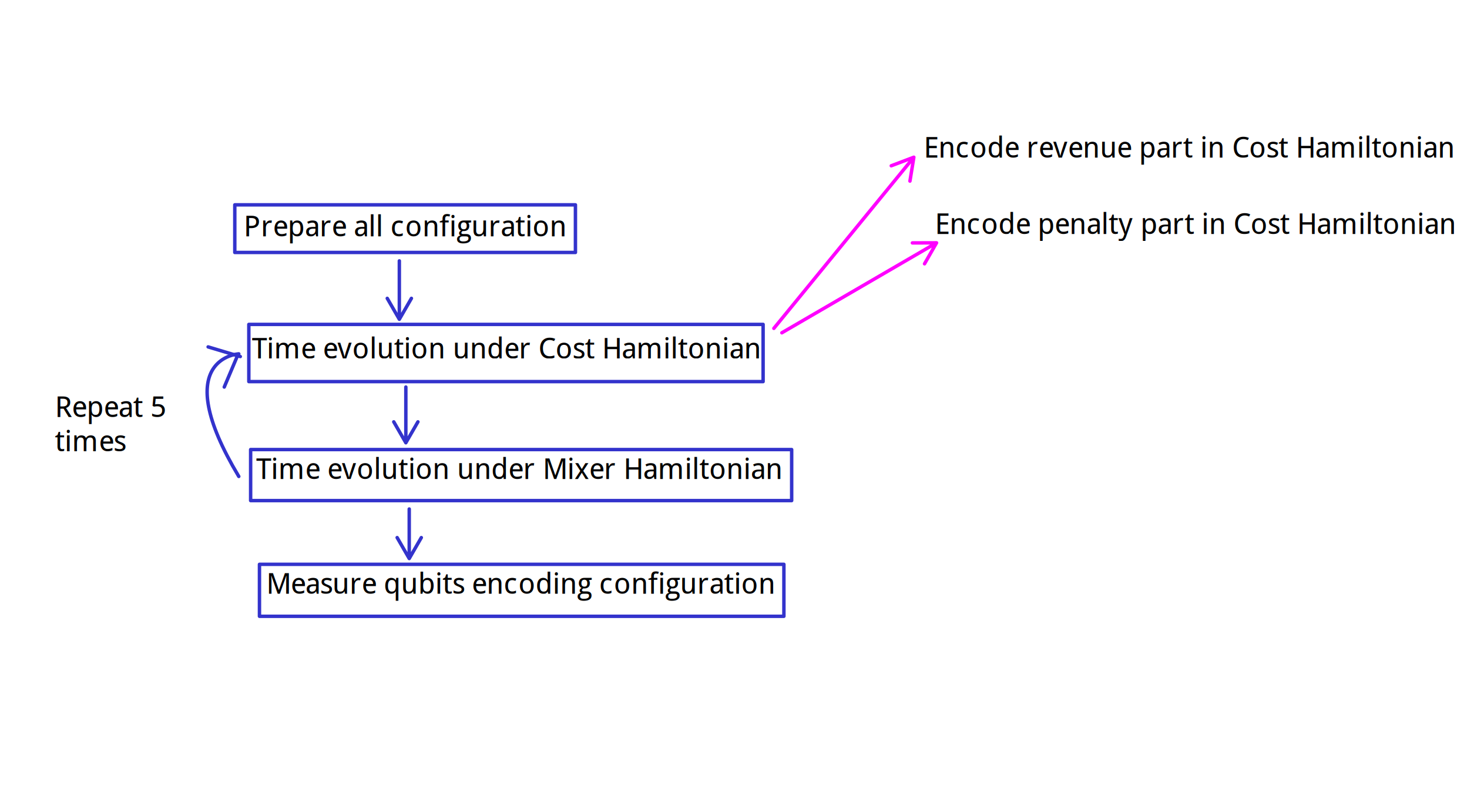 In this post, we will discuss how to implement a quantum circuit that solves an optimization problem without classical optimization, based on this adiabatic quantum computation framework. In other words, the circuit gives a good approximate solution in a single run. This is contrary to the well-known QAOA quantum-classical hybrid approach.