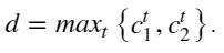 • the daily degradation, or health cost (number of cycles), for the battery $c_{1}^{t}$, $c_{2}^{t}$